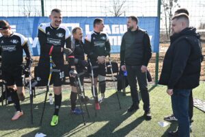 Підтримувати нашу ампфутбольну команду «Колос-Буревій» (Київщина) на матчі чвертьфіналу Кубка України з футболу серед осіб з ампутаціями завітав голова Київської обласної військової адміністрації Микола Калашник. Долучилися до вболівальницького азарту начальник Управління молоді та спорту КОДА Андрій Михальчук та Юрій Кравченко, директор Київського регіонального центру “Інваспорт”.