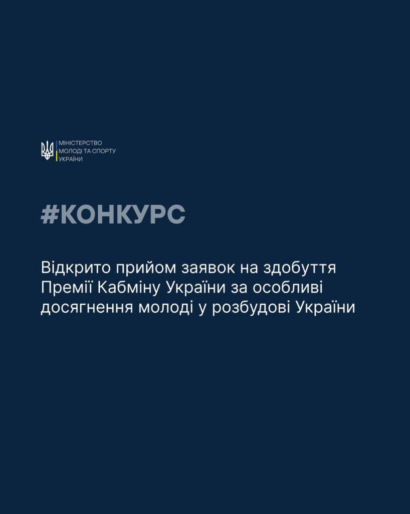 Для здобуття Премії потрібно надіслати Мінмолодьспорту супровідний лист у довільній формі не більше як на одну особу від організації до 1 березня 2025 року.