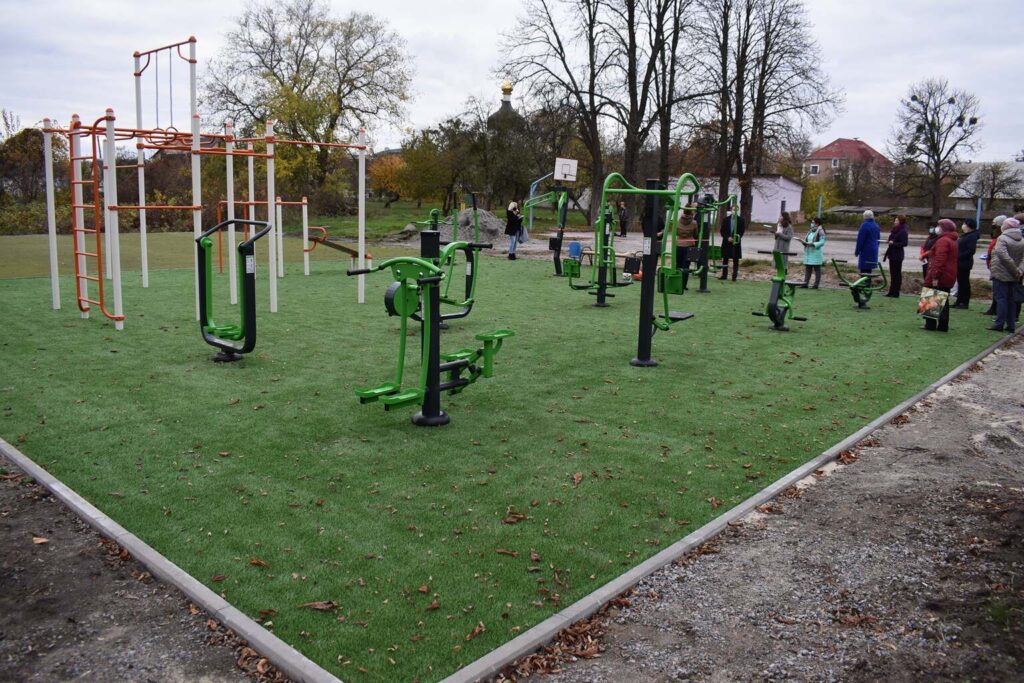 2. Міні-футбольні поля зі штучним покриттям розміром 42х22 м та майданчики з вуличними тренажерами: