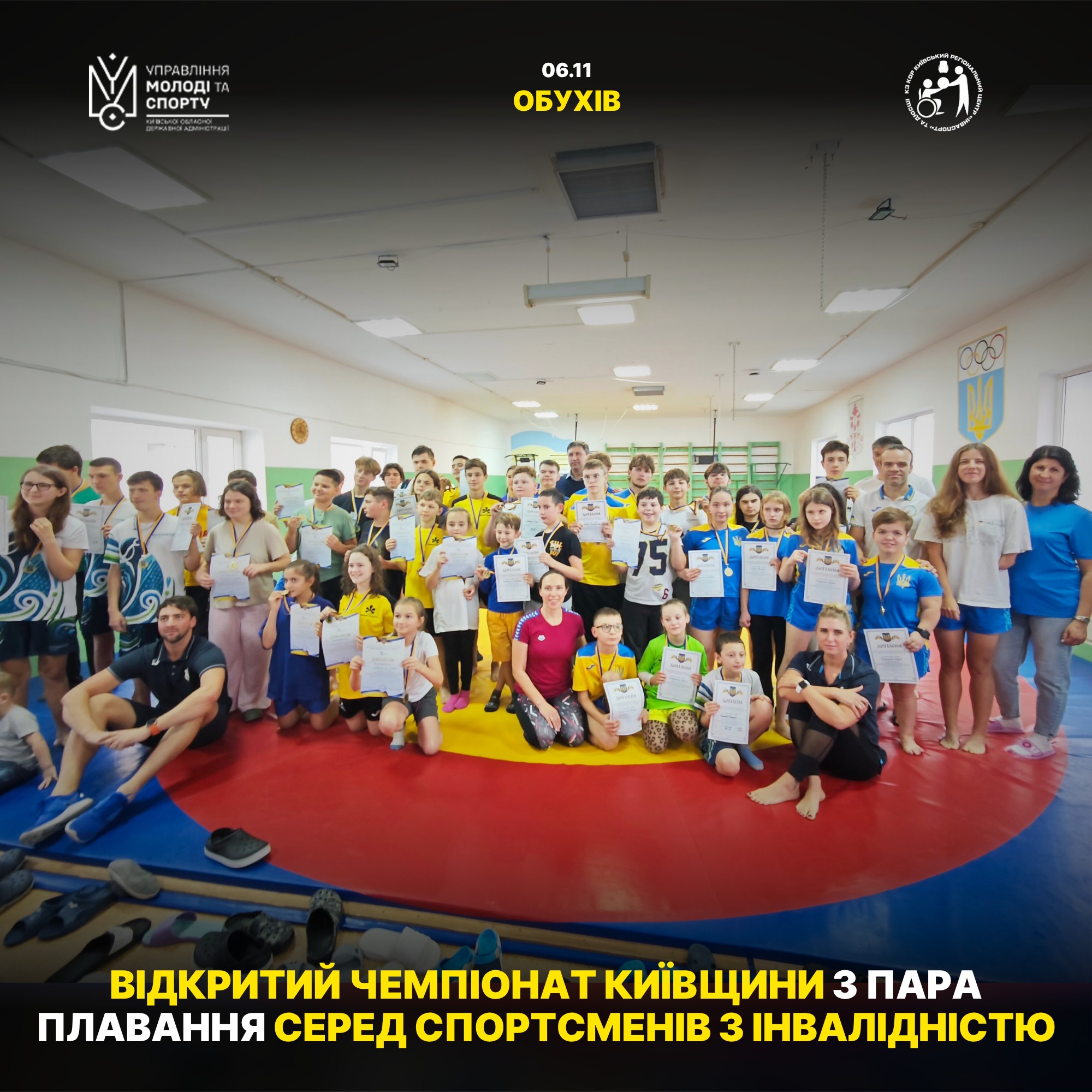6 листопада в Обухів відбувся Відкритий чемпіонат Київської області з пара плавання серед спортсменів з ураженнями опорно-рухового апарату, порушеннями зору, слуху та ПРФР.